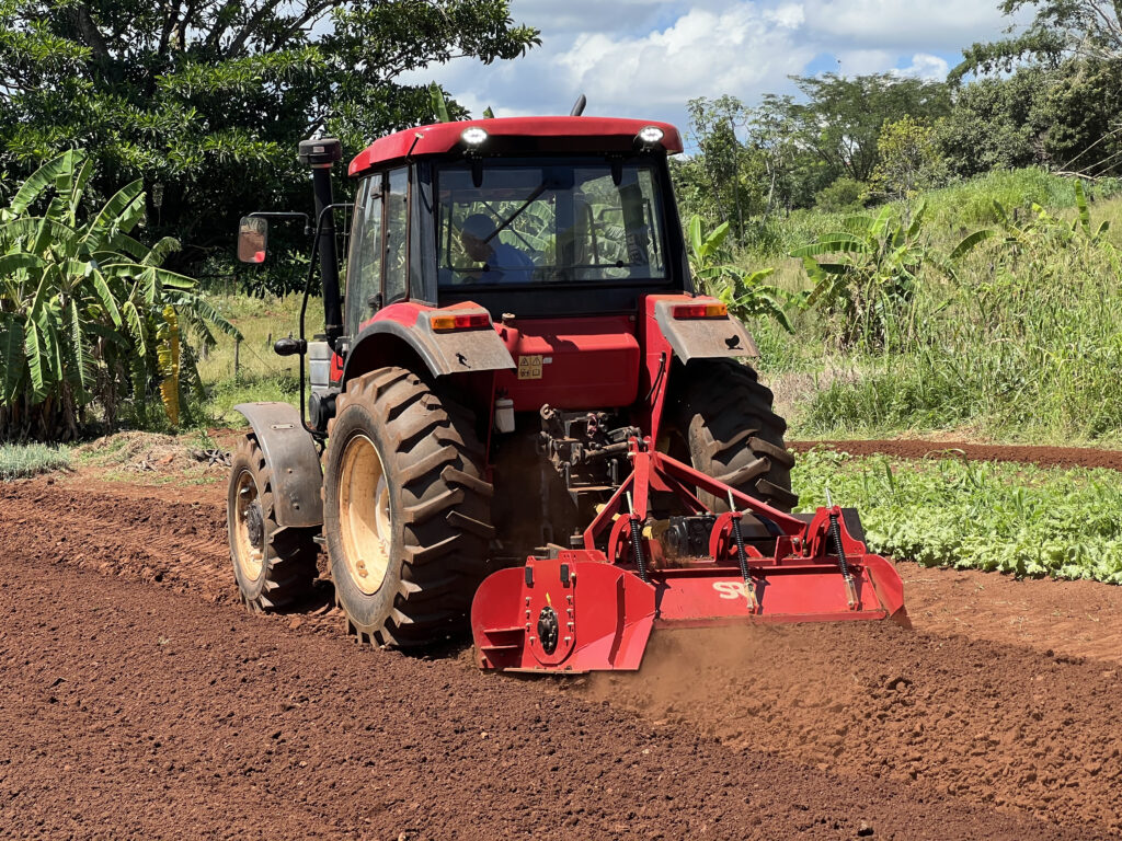 Com o uso do trator e do equipamento agrícola, a terra fica bem preparada e macia, facilitando a formação dos canteiros e ajudando no plantio das hortaliças nas hortas familiares.